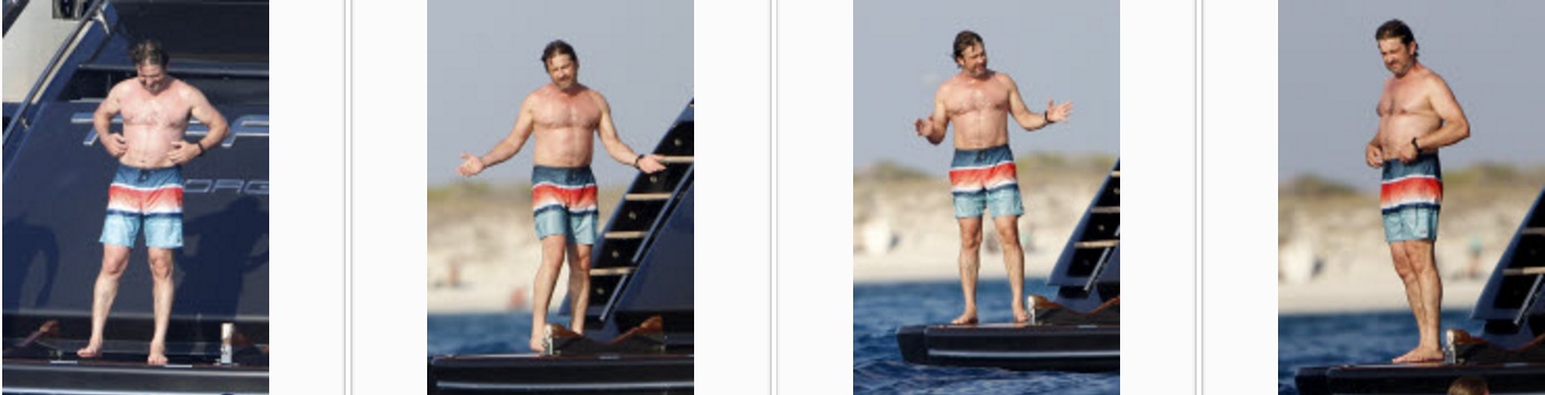 Джерард Батлер посетил остров Форментера (Испания) в сопровождении друзей на борту большой яхты. Поели в одном из модных ресторанов, загорали на пляже в гамаке и искупались в кристально чистых водах острова