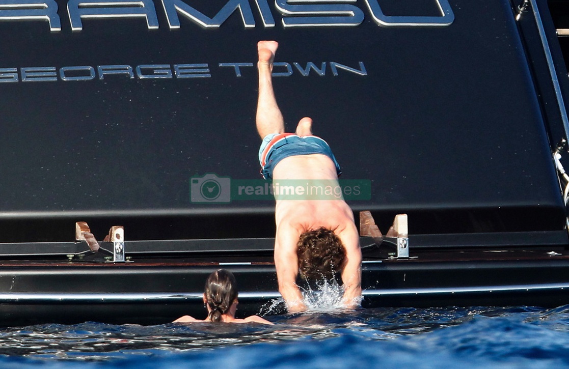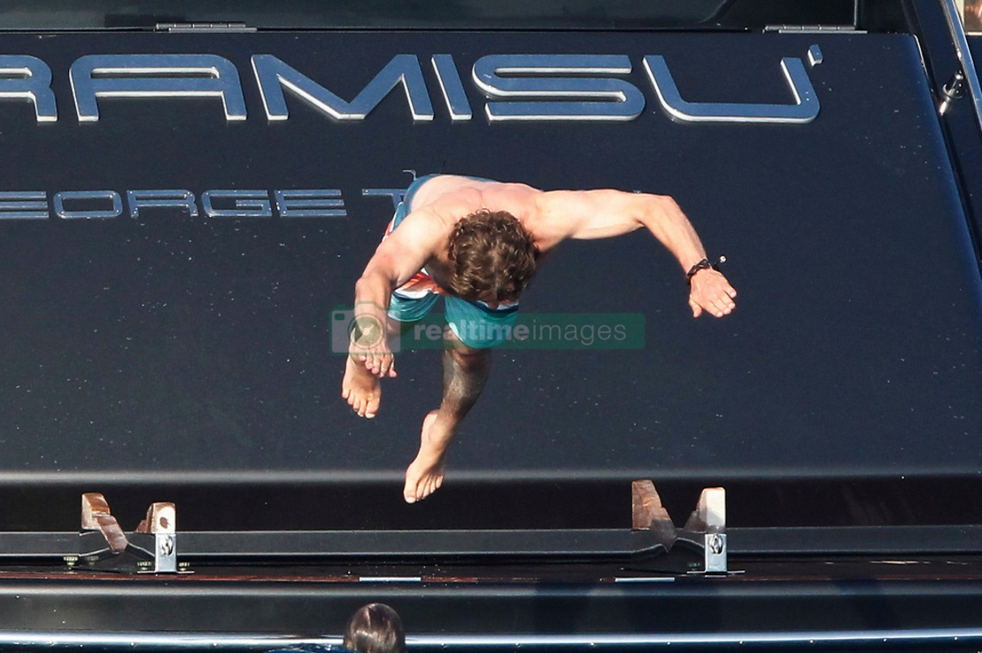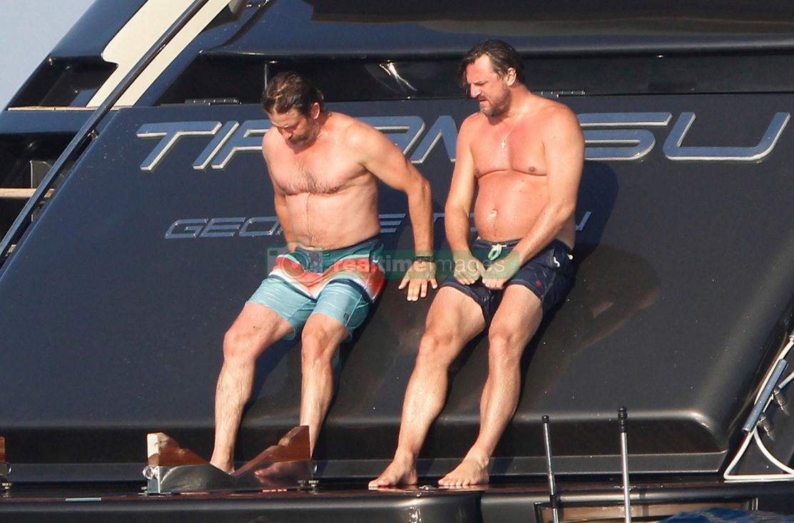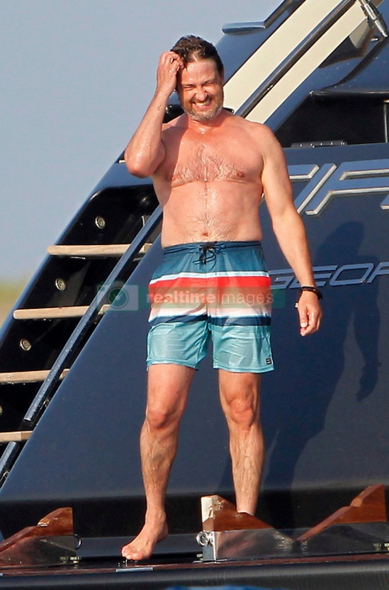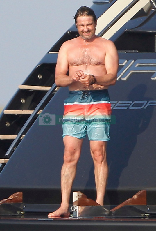 EXCLUSIVE Actor Gerard Butler visits the island of Formentera (Spain) accompanied by friends on board a large yacht. Have eaten at one of the trendy restaurants, have sunbathed on beach hammocks and have given a refreshing swim in the crystal clear waters of the island
