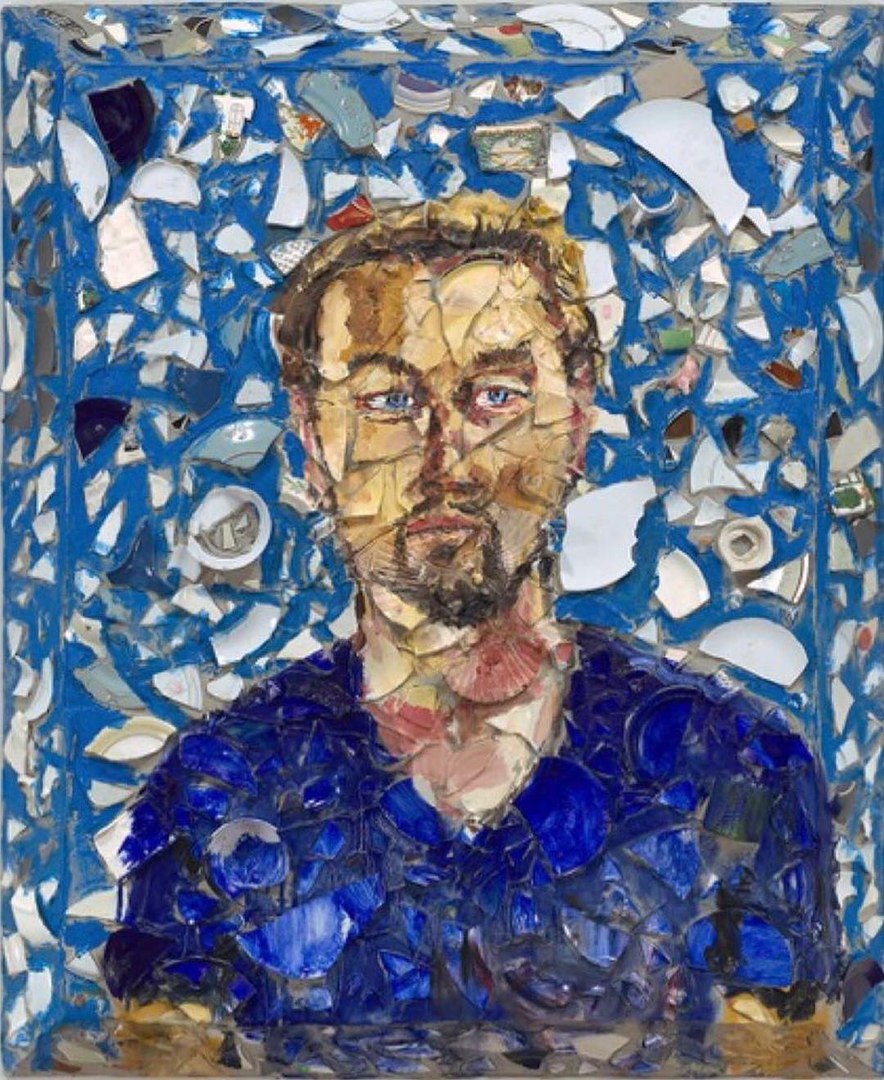 На портрете — разбросанные разбитые черепки керамической плитки и других материалов, некоторые выглядят гармонично, другие выглядят застывшими перед зрителем. Леонардо ДиКаприо находится перед этим хаотическим фоном, полностью раскрашенный.