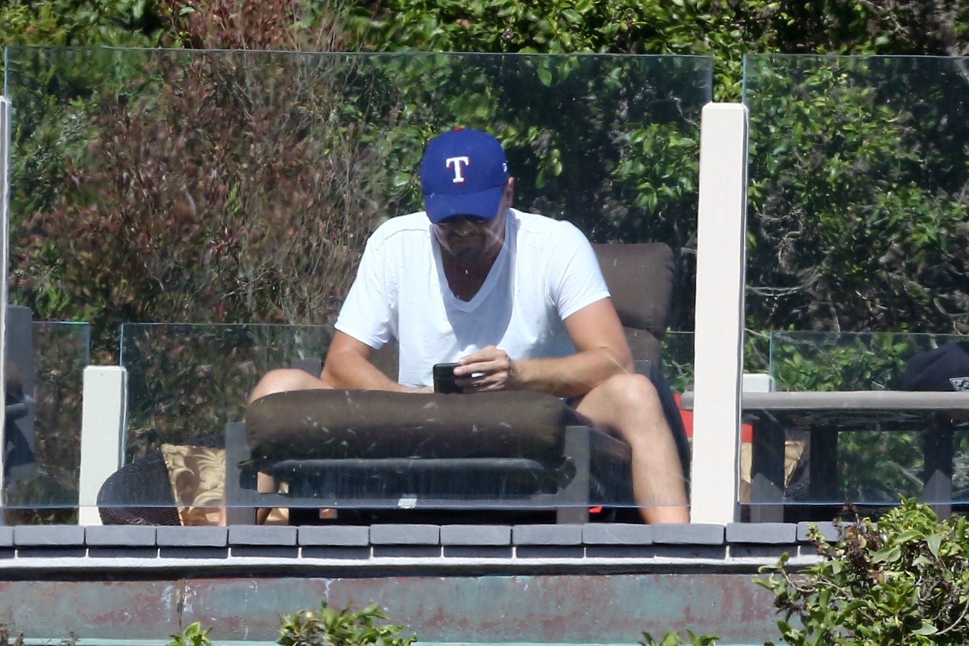 Фотографии сделаны 20 августа в Малибу, Лео отдыхает у бассейна, компанию ему составили друзья Бредли Купер и Чак Пачеко.