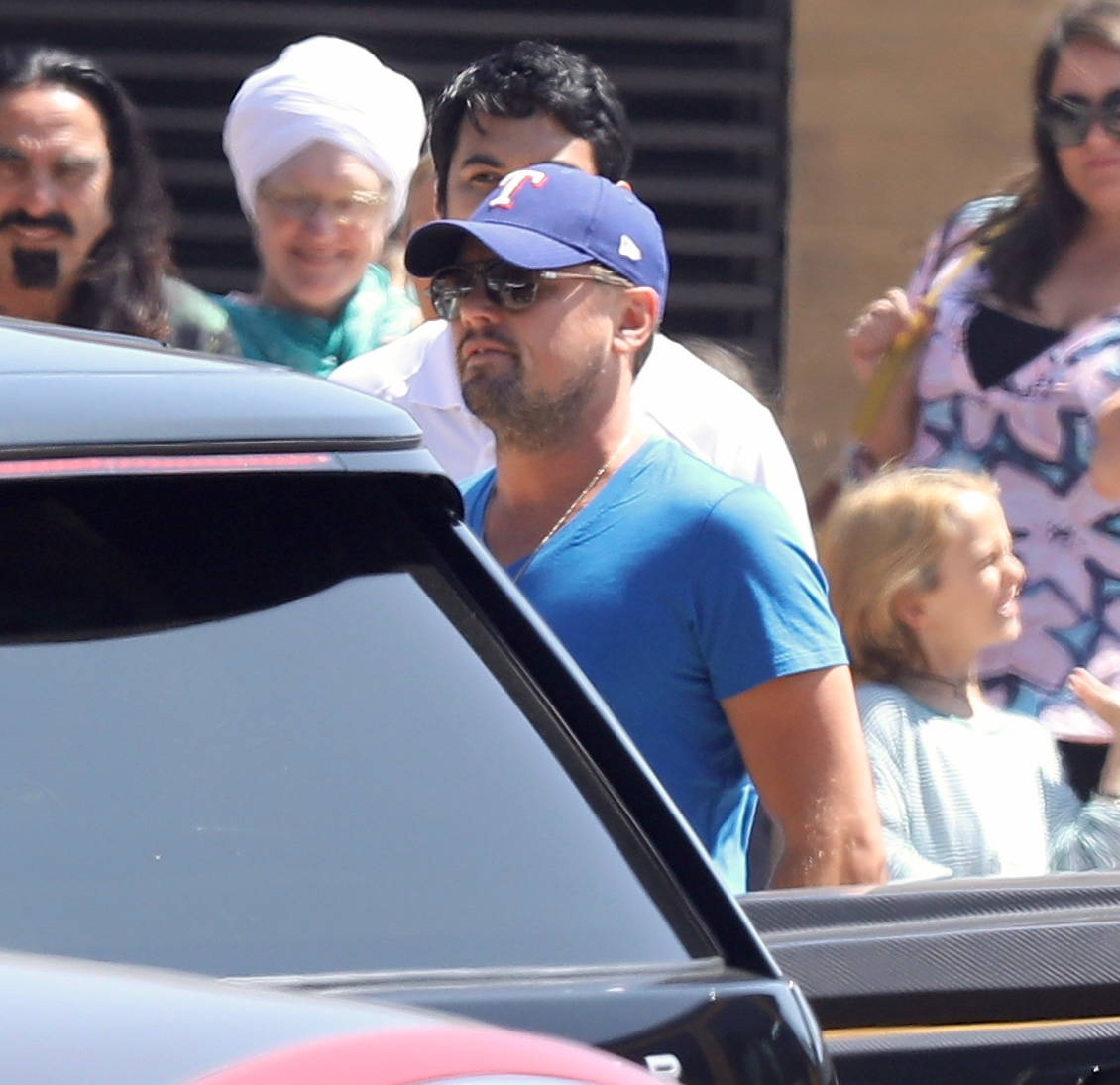 Леонардо покидает ресторан NOBU со своей семьей (отцом Джорджем, мачехой Пегги, племянницей Нормади, крёстными детьми Руби и Отисом, кумой Дженнифер Мейер), 20 августа.