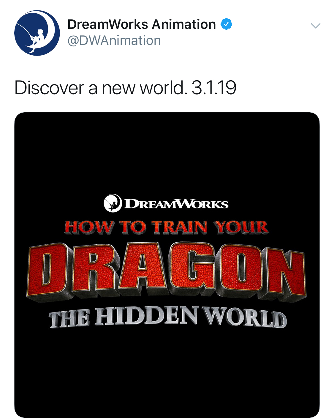 DreamWorks Animation анонсировала новую дату выхода “Как приручить дракона 3” - 1 марта 2019 (первоначально дата выхода была 18 мая 2018).