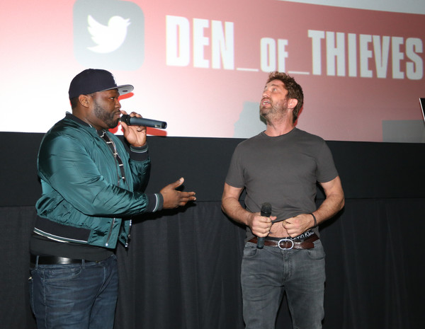 MIAMI, FL - JANUARY 10: (L-R) Curtis '50 Cent' Jackson and Gerard Butler at The Den of Thieves special screening at Regal South Beach on January 10, 2018 in Miami, Florida. 'Den Of Thieves' Private Screening