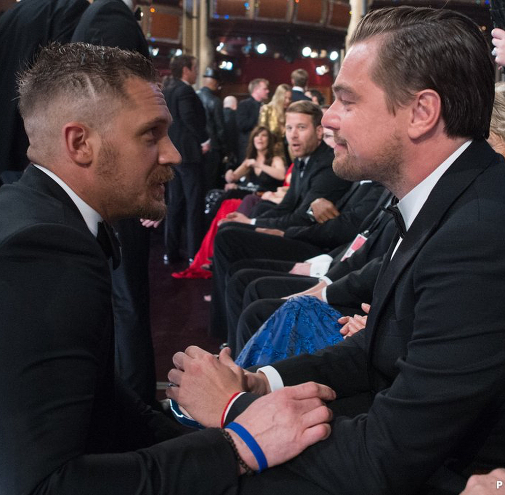Актер Том Харди признался, (ещё в 2016 году), что проспорил Леонардо ДиКаприо, не поверив, что тот действительно будет номинирован на премию «Оскар» за главную роль в драме «Выживший». Актеры и коллеги по съемочной площадке спорили на татуировку о том, как распределятся номинации в 2016 году, и выигравший пари Леонардо ДиКаприо уже тогда придумал, какой она должна быть: Том Харди: «Он неуверенно жутким почерком вывел: "Лео знает всё" ("LEO knows ALL"), и я ему тут же сказал: "Окей, я ее сделаю, но напиши это по-человечески!", - рассказал Том Харди в интервью журналу Esquire, не уточняя, на какой именно части тела должна быть эта татуировка по условиям этого смешного спора.
