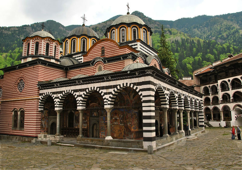 ДБ:Я там был 20 лет назад.Помню длинную прогулку которую мы тогда сделали.С нами была девушка работающая на киностудии и конкретно по фильму в котором я снимался-(Думаю речь идет о съемках Вишневого сада)Она окончила историю и в машине рассказала нам всю историю Болгарии.Есть люди которые очень интересно рассказывають...но она рассказала ее буквально по датам-Болгарию завладели в каком то году,потом освободилась в этом и этом году (наверно она рассказывала ему сперва о византийском рабстве ,а потом о турецком рабстве)а потом турки приехали и было рабство,рабство,рабство...Так что у нас был урок по истории,а после длинной прогулки Рильский монастыр нам показался ошелемляющийся