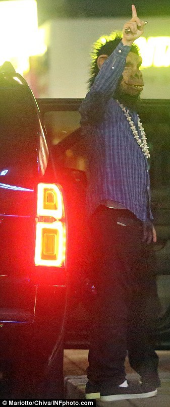 2014 год Лео в маске обезьяны из "Планеты обезьян"