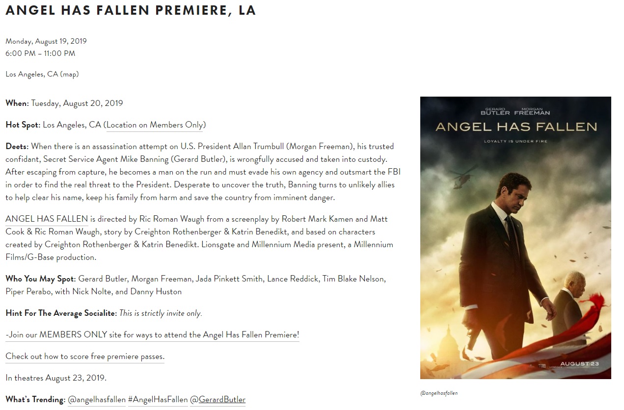 - Присоединяйтесь к нашему сайту только для участников, чтобы посетить премьеру Angel has Fallen!