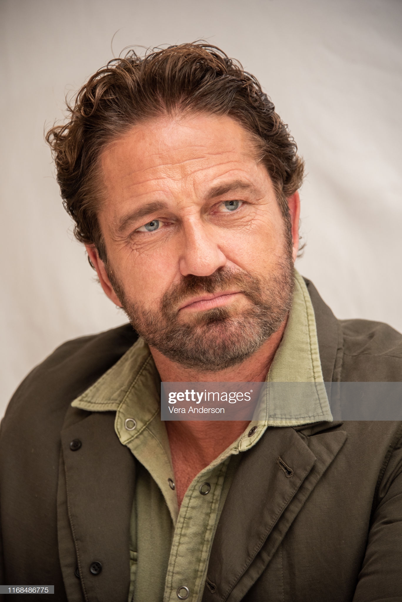Gerard Butler at the "Angel Has Fallen" Press Conference at the Four Seasons Hotel on August 16, 2019 in Beverly Hills, California.