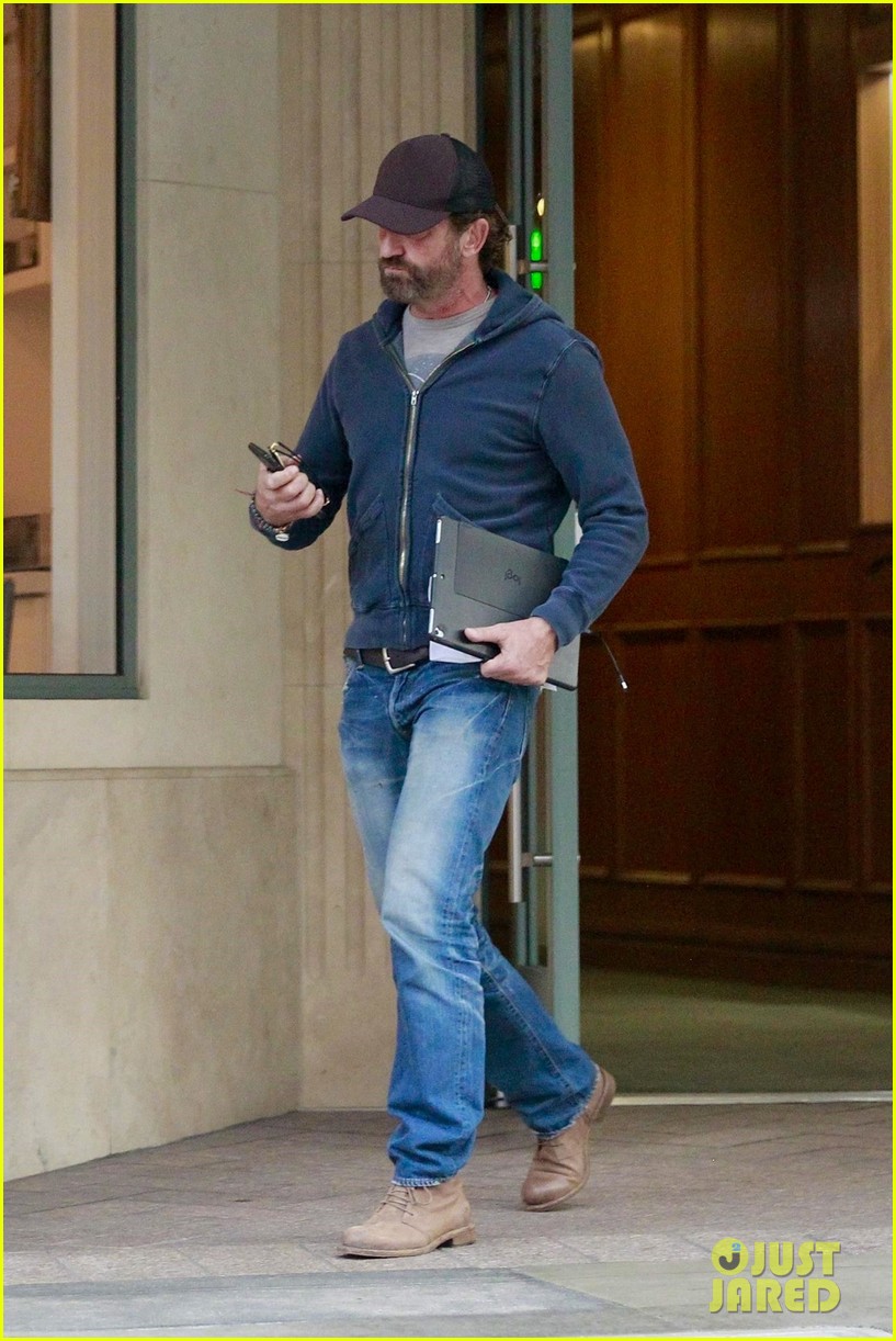 Джерард Батлер выходит из офисного здания в пятницу утром (17 января) в Беверли-Хиллз, Калифорния.