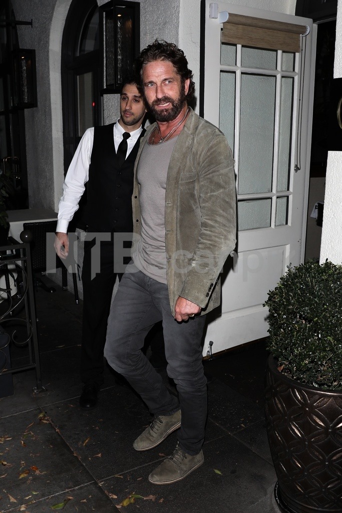 Gerard Butler grabs dinner at Madeo restaurant in Beverly Hills. 28 Jan 2020