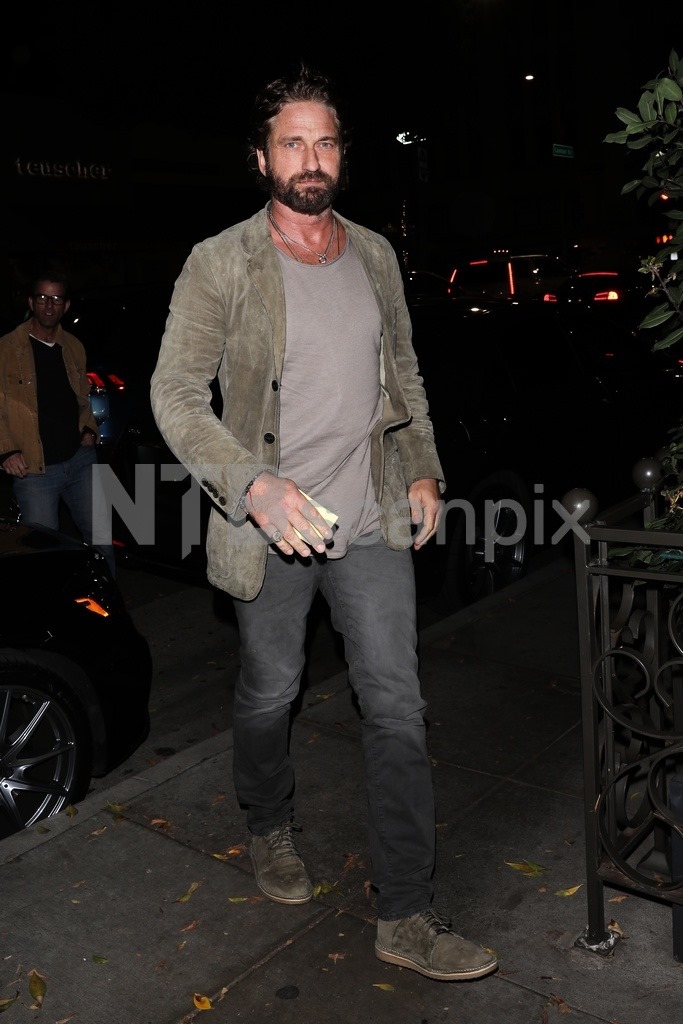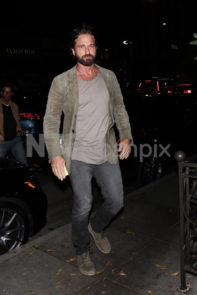 Gerard Butler grabs dinner at Madeo restaurant in Beverly Hills. 28 Jan 2020