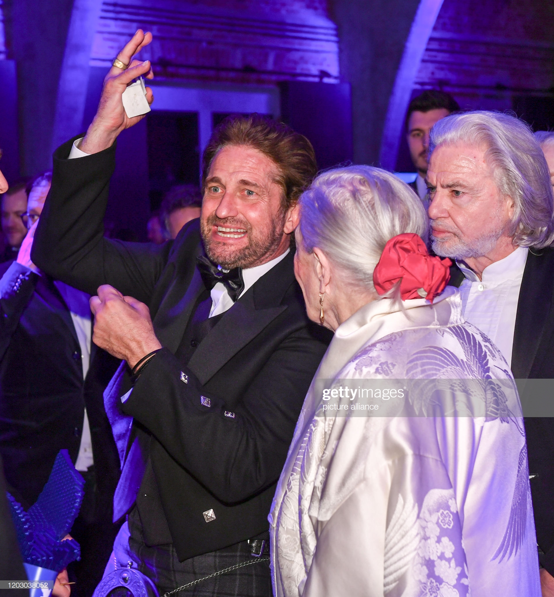 Джерард Батлер, Ванесса Редгрейв и Герман Бюльбекер во время гала-концерта Cinema For Peace в Westhafen Event & Convention