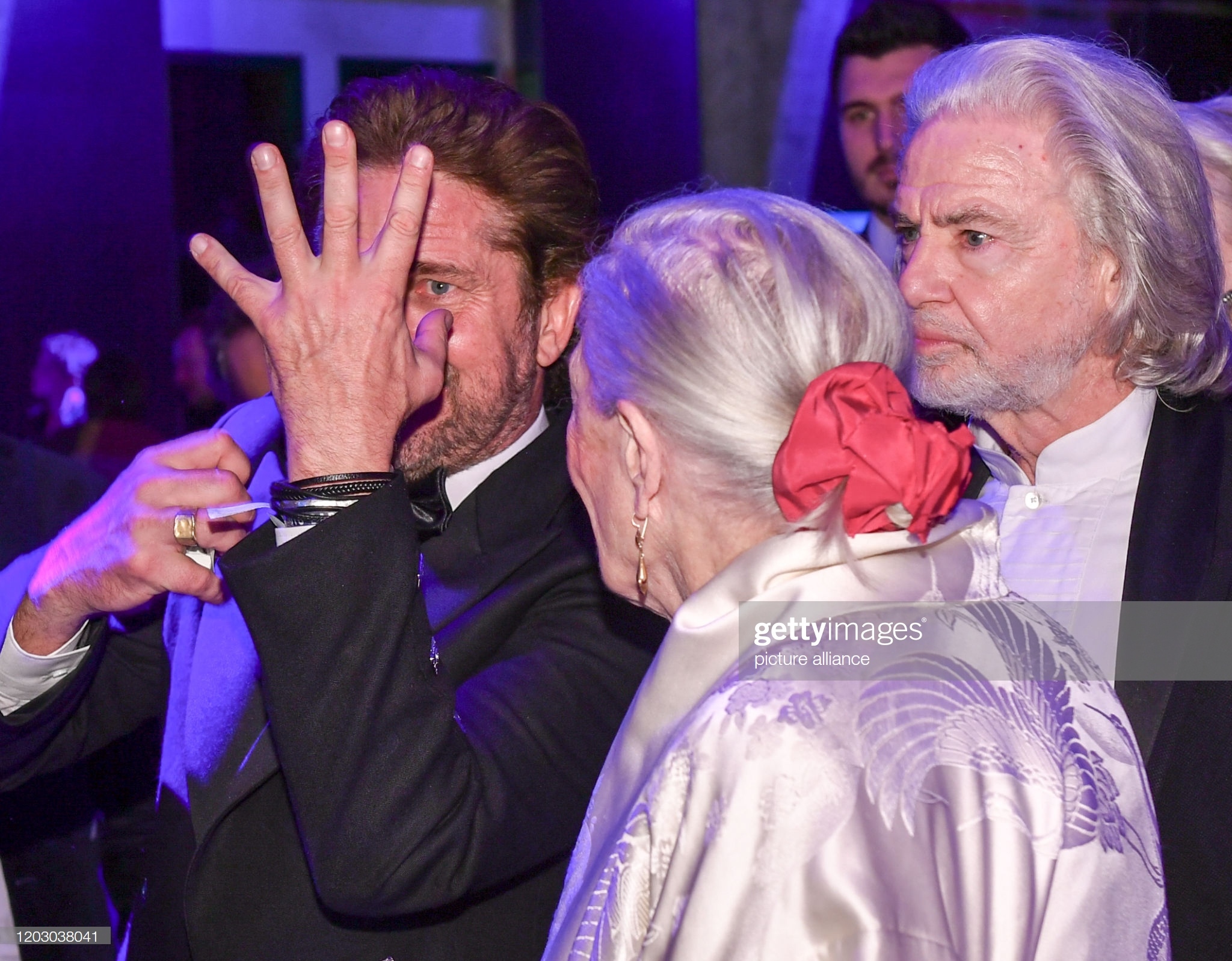 Джерард Батлер, Ванесса Редгрейв и Герман Бюльбекер во время гала-концерта Cinema For Peace в Westhafen Event & Convention