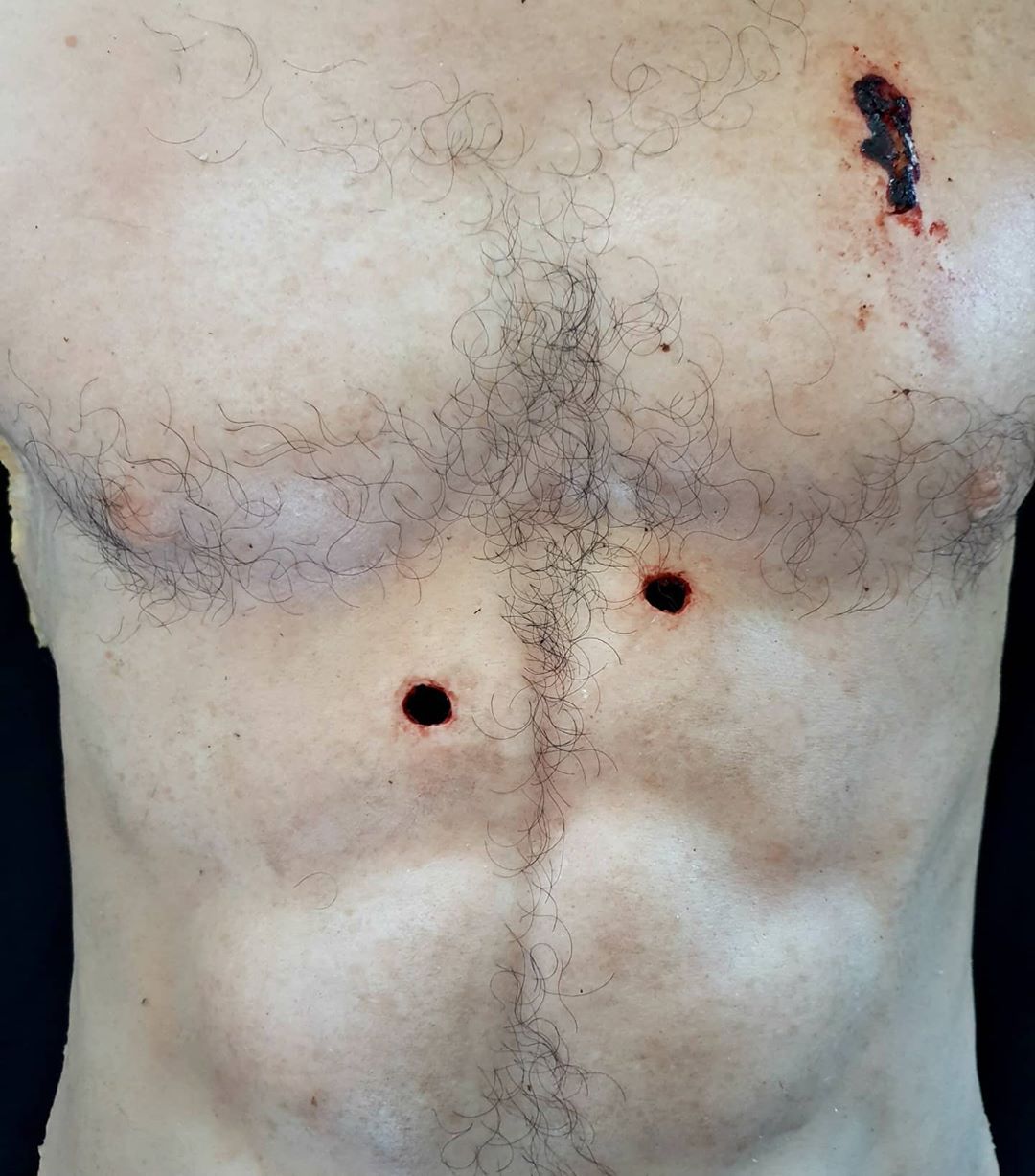 Торс Дракулы (Джерард Батлер) со спецэффектами грудной клетки из фантастического фильма ужасов "Дракула 2000" Патрика Люссье.