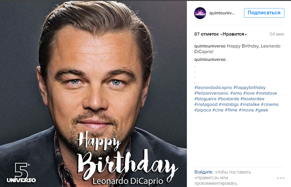 Инстаграм взорван поздравлениями адресованными нашему Леонардо! Его поздравляют многочисленные страницы его поклонников (фан-аккаунты), просто поклонницы и поклонники, журналы, газеты, репортеры и ВСЕ, кто знает про ДР Лео ДиКаприо)))