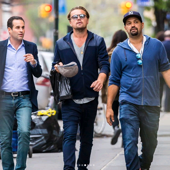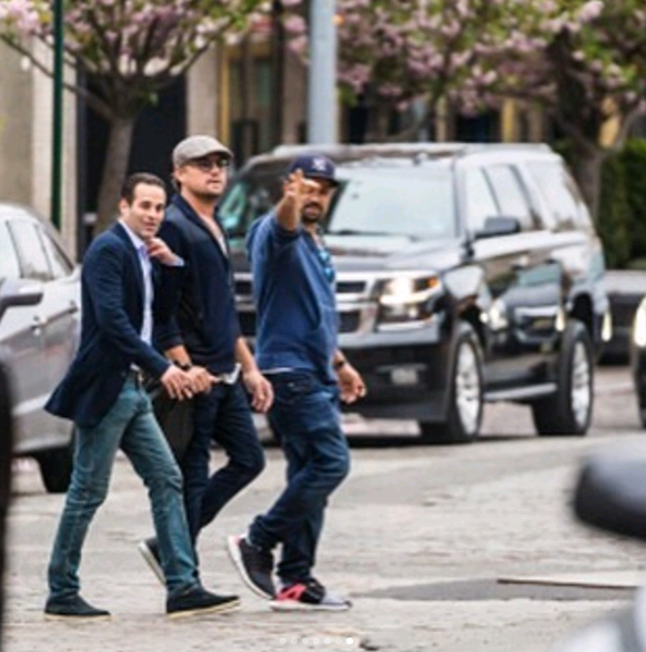 Лео в Нью-Йорке на прогулке в компании друзей Винсента Ларески и Берта, 27 апреля.