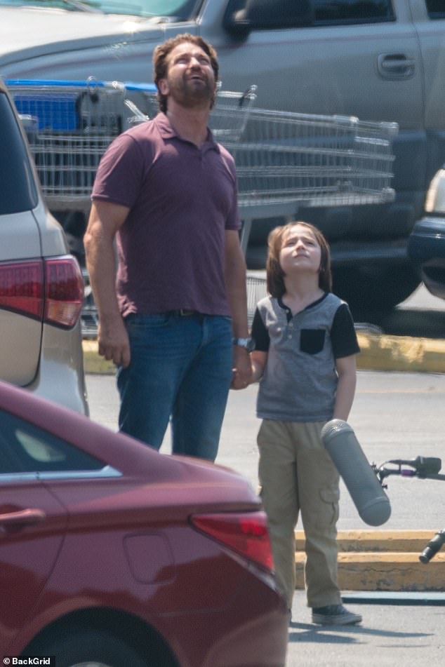 Джерард Батлер выглядит грубо красивым, когда он снимает сцены для своего предстоящего апокалиптического триллера Гренландия