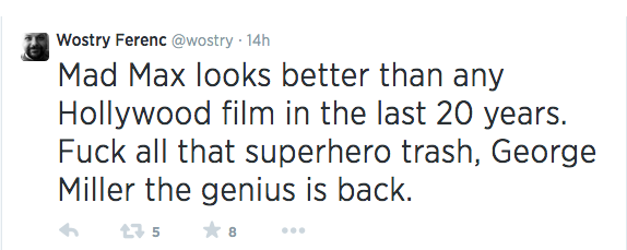 Что касается слишком яркой картинки и всевозможных сравнений Дороги Ярости с предыдущими Максами, - то это персональный выбор, творческое решение Миллера, который не просто режиссер всех этих фильмов, но и Автор оригинальной идеи франшизы.