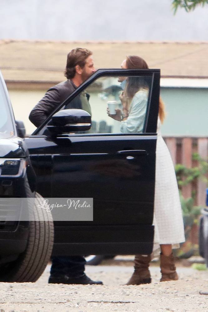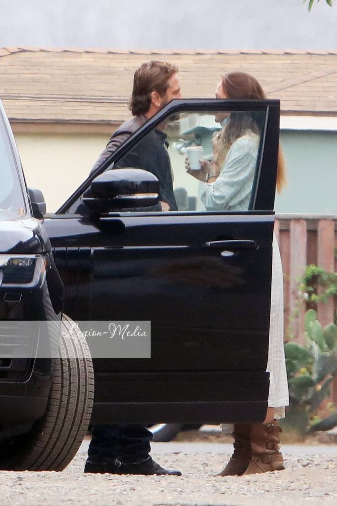 2июля Gerard Butler And Girlfriend Morgan Brown Are Spotted Sharing A Kiss In Malibu, California.