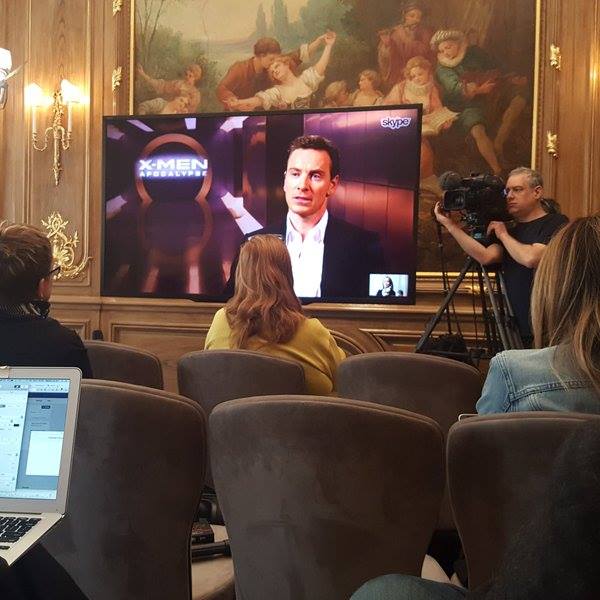 Michael (as Erik) and Director Bryan Singer on the ‪#‎XMenApocalypse‬ film set. Michael as Magneto. ‪#‎Fassbender‬