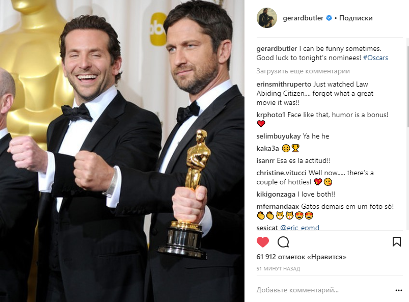 I can be funny sometimes. Good luck to tonight’s nominees!Kika писал(а):Джерр в своем аккаунте опубликовал https://www.instagram.com/p/Bf6O9Q3FDyz ... rardbutler