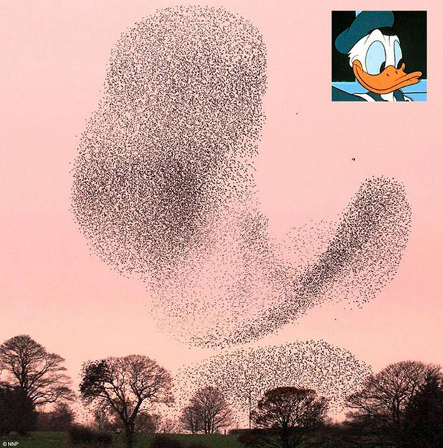 Во время ежегодной миграции на зимовку в Шотландию прилетают европейские скворцы (sturnus vulgaris), гонимые морозом из родных мест в России и Скандинавии. Взлетая, стаи этих птиц, похожие на огромные черные тучи, формируют в небе причудливые фигуры.