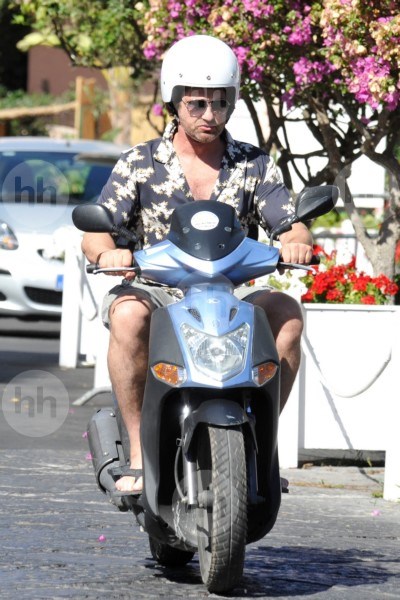 Gerard Butler Suits Up in Ischia, Rides Scooter Around Town