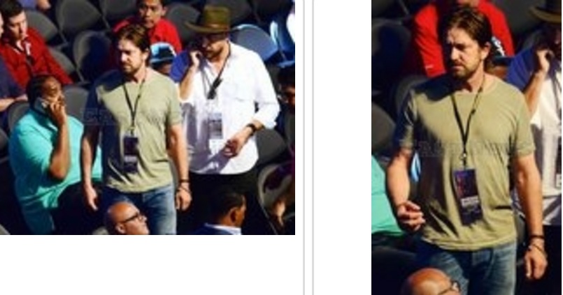 Gerard Butler Says Hello to Chris Hemsworth at Mayweather vs McGregor Fight