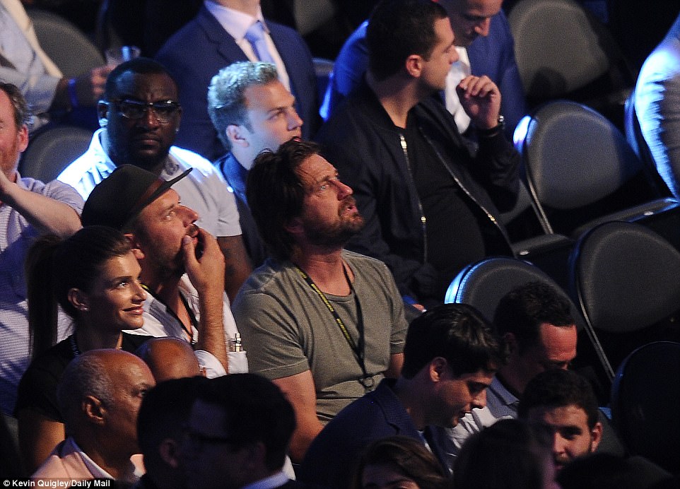 Голливудский актер Джерард Батлер, 47 лет (слева), был замечен целующим загадочную блондинку (справа) в ночном клубе в Лас-Вегасе в пятницу перед супербоем Мэйвезер против МакГрегора