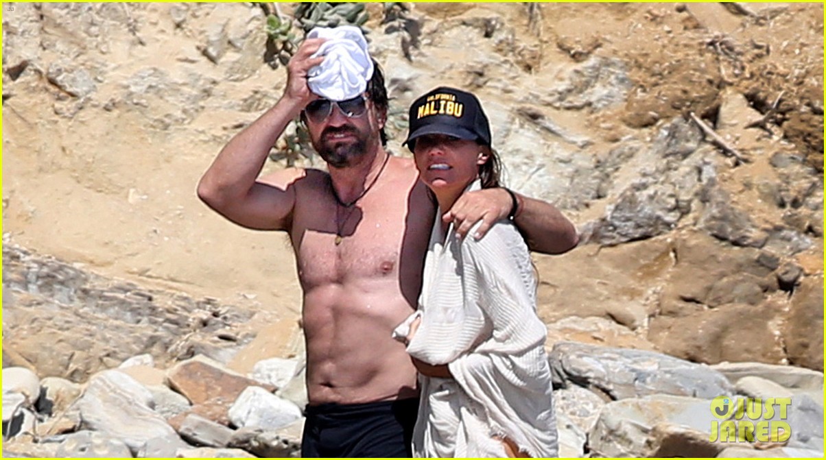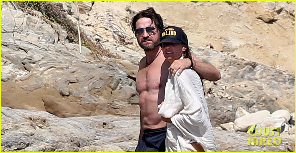 Джерард Батлер демонстрирует свое тело без рубашки, прогуливаясь по пляжу на этой неделе в Малибу, Калифорния.