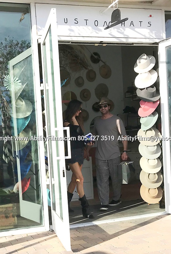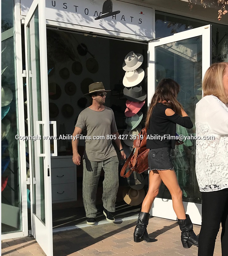Джерард Батлер покупает шляпы со своей подругой в Малибу, штат Калифорния . Парочка смеялась и, держась за руки, отлично проводила время.