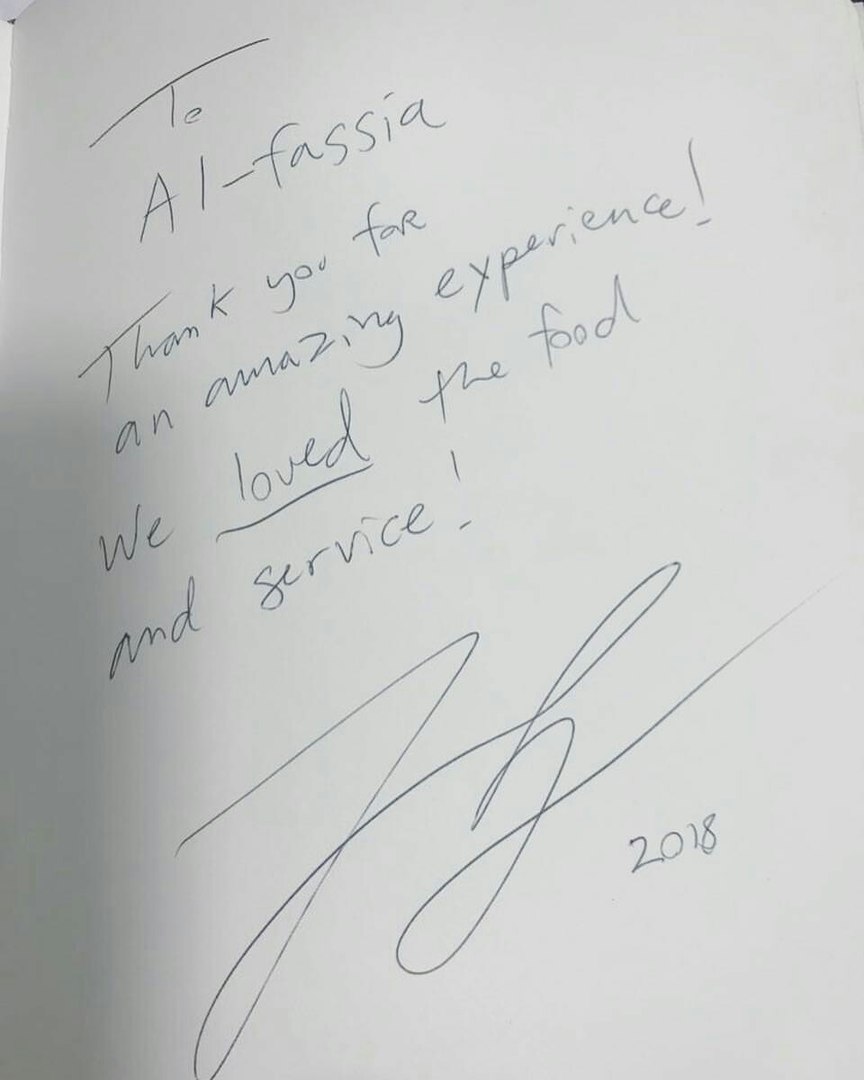 "Для Al-Fassia Спасибо вам за удивительный опыт! Нам понравилась еда и сервис!" Леонардо ДиКаприо. 2018.