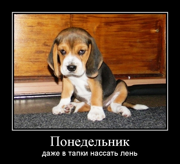 АААА! Какая прелесть!!!! А у меня и во вторник и в среду и тд такое же настроение. :D И собака у меня той же породы- бигль. И такой же минидефектик с глазами -раскосость. :)