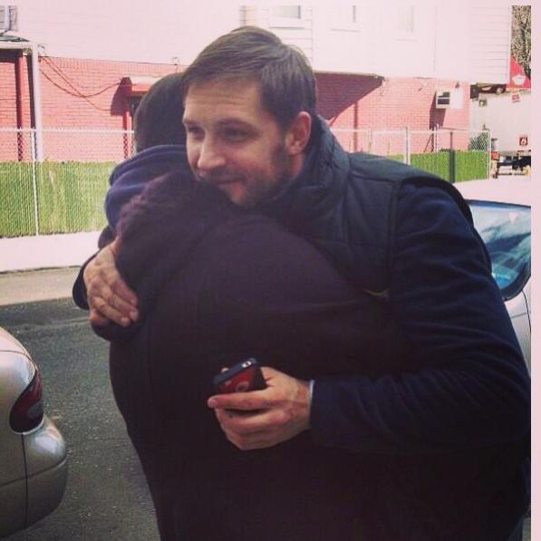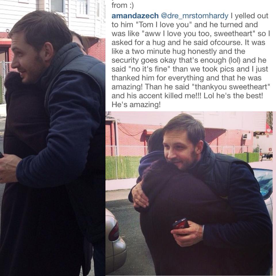 С воплем: "О май гад! Том, я люблю тебя!!!!", она бросилась к нему в объятия и висела на нем, реально, около 2 минут
