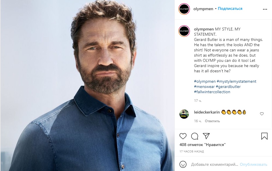 Джерард Батлер - человек многих вещей. У него талант, взгляд и рубашка! Не все могут носить джинсовую рубашку так же непринужденно, как и он, но с ОЛИМПом можно и так! Позвольте Джерарду вдохновить вас, потому что у него есть все, не так ли?