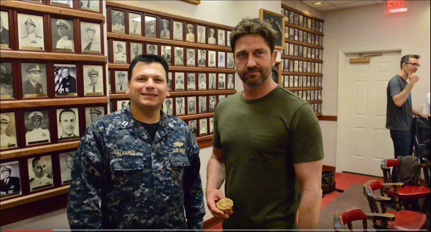 Gerard Butler asks us and bridgit mendler to sing Happy birthday to his mom