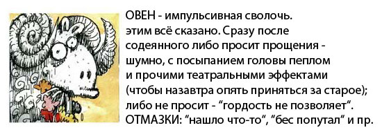 А еще у них нет месячных, они не рожают детей, у них не бывает целлюлита, им не надо носить шпильки, они могут постоянно тягаться в кроссовках и иметь один костюм на все случаи жизни, им позволено делать первый шаг в отношениях и даже от армии они косят...Elf писал(а):Я тоже не раз задумывалась о том, как мужикам хорошо-то.... Ни тебе эпиляция, к которой я себя каждый раз долго морально готовлю, ни тебе макияж, из-за которого приходится вставать пораньше, ни прическа, которую тоже не всегда спросонья удается уложить симметрично... и куча еще всяких таких вещей.... Мой друг никогда не понимает, почему я не могу провести с ним ночь и сразу же поехать на работу. А я должна во что бы то ни стало среди ночи ехать домой, потому что у меня с собой нет моей комнаты, в которой ВСЁ(!!!!!!) необходимое.
