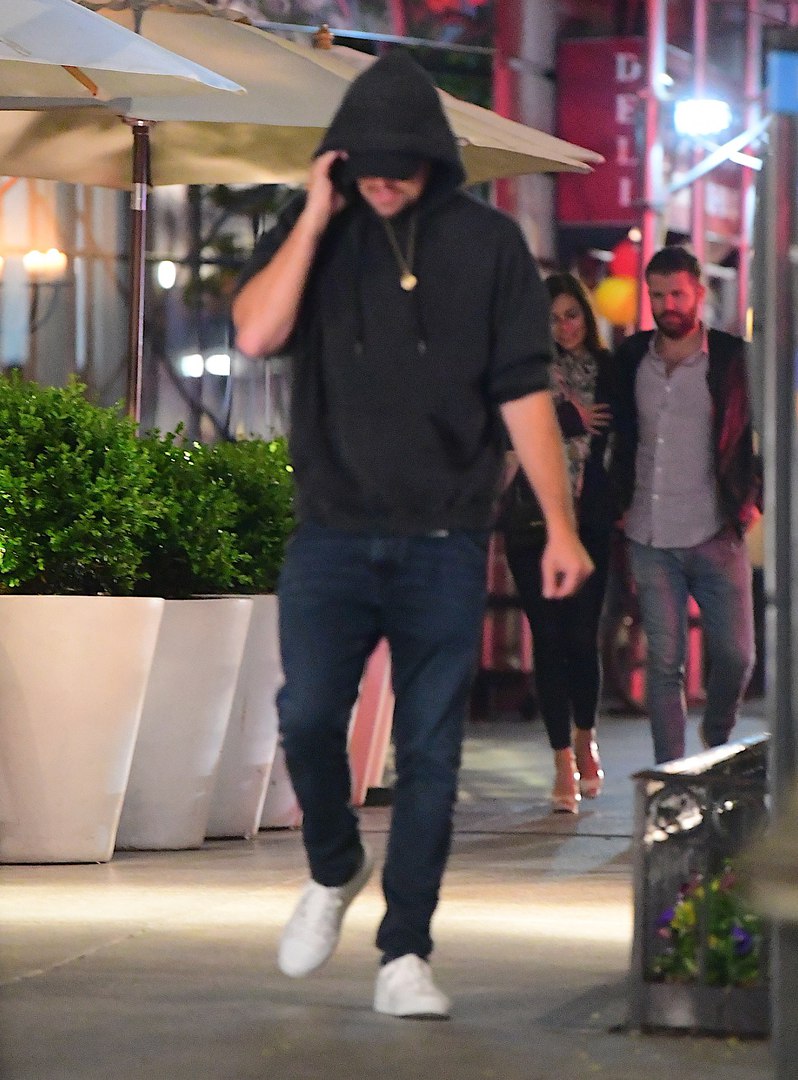 Вечер 14 мая, Леонардо выходит из ресторана пoсле ужина с друзьями (Нью-Йорк)