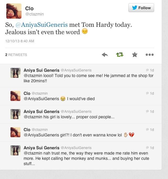 Итак, Aniya Sui Generis встретила Тома Харди сегодня. Ревную - это не то слово :D :evil: