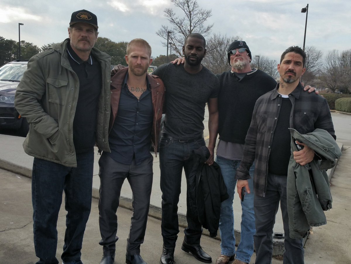 More from Den of Thieves film set. Actor-Cops @_BrianVanHolt Kaiwi Lyman @ItsMoMcRae @MauriceCompte and Actor-robber Evan Jones. Killin it!