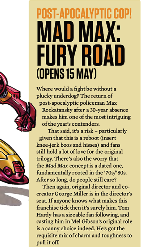Насколько я поняла в английском журнале, посвященном научной фантастике и фэнтези - «SFX» вышла статья, посвященная выходу в 2015 году нашего Макса :girlangel: и не только его.