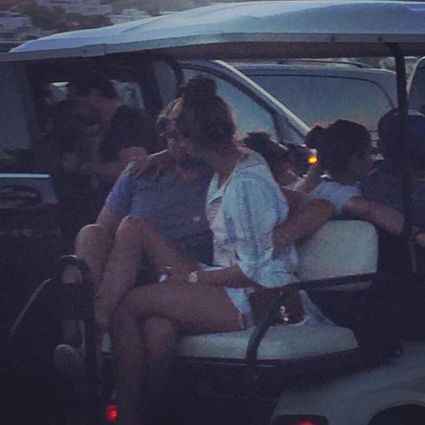 Леонардо ДиКаприо проводит время на Миконосе в окружении своих друзей, со своей девушкой, 24-летней моделью Ниной Агдал. Большую компанию уже видели в местном ресторане, Лео можно узнать по его примечательной кепке. Вместе с друзьями он наслаждается купанием в море, прогулками на катере, гуляют по улицам, заходят в рестораны и даже посетили концерт Адониса Ремоса. Лео и его компания не сели за столики в первом ряду, а оказались в самом конце зала, где он и его девушка мило танцевали под песни греческого певца, там-то его и «поймала» камера рацци.