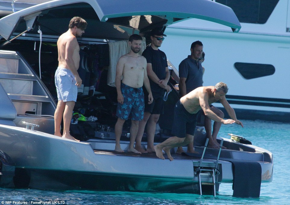 Лео на отдыхе с друзьями (Тоби Магуайером и др.) и своей девушкой Ниной Агдал (24 июля, Ибица)