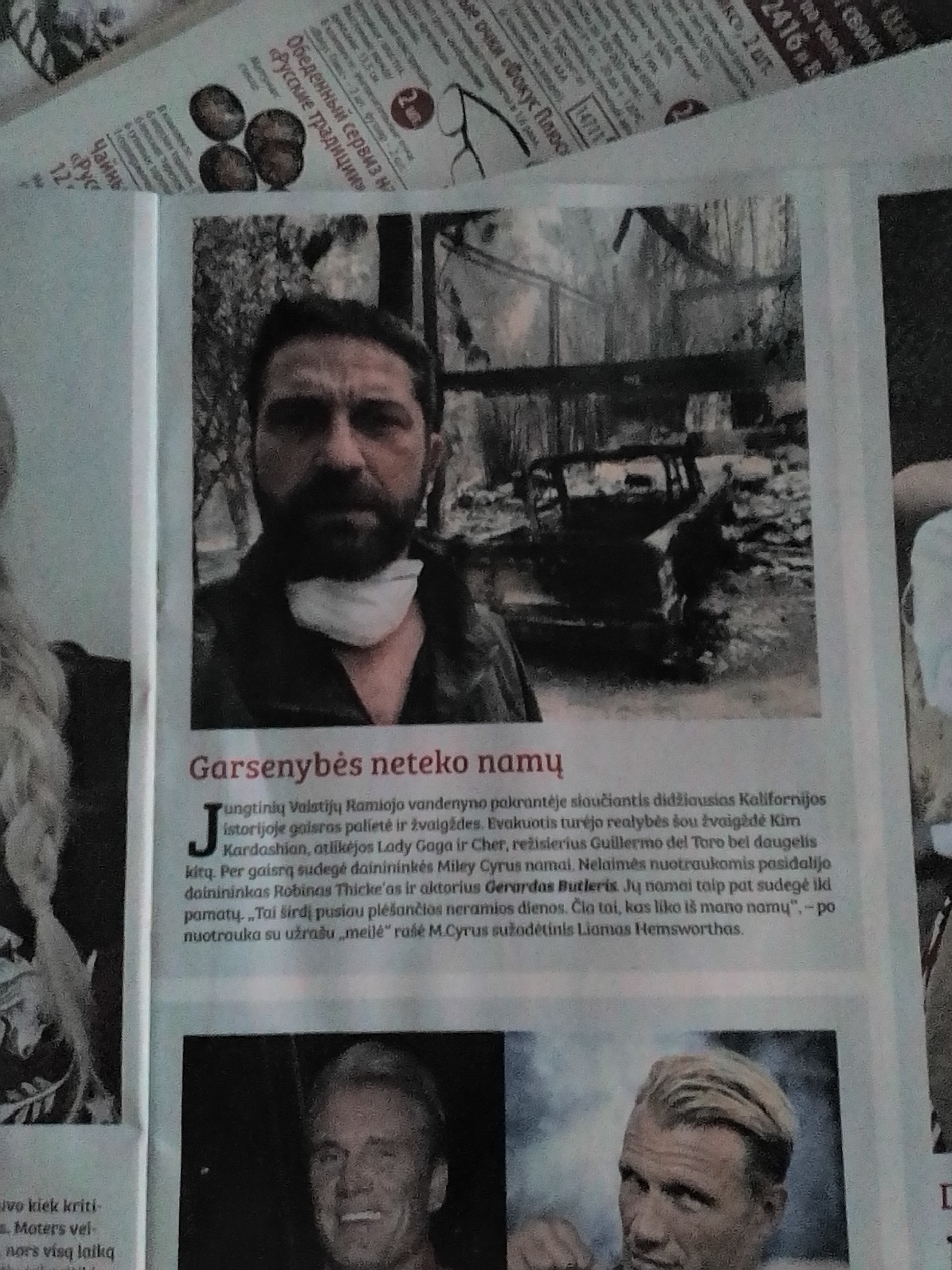 Самый большой пожар в Калифорнийском побережье Тихого океана в США тронул и звёзд. Эвакуироватся должны были Ким Кардашян, певицы Леди Гага и Шер, режиссёр Гильермо дель Торо и много других. В пожаре згорел дом певицы Майли Сирус. Фотографиями с погорелища поделился певец Робин Тик и актёр Джерард Батлер. Их дома тоже сгорели до тла. "Это розрывающие сердце пополам беспокойные дни. Это то, что осталось с моего дома", - под фотографией с надписью "любовь" написал парень Майли Сирус Лиям Хемсворт.