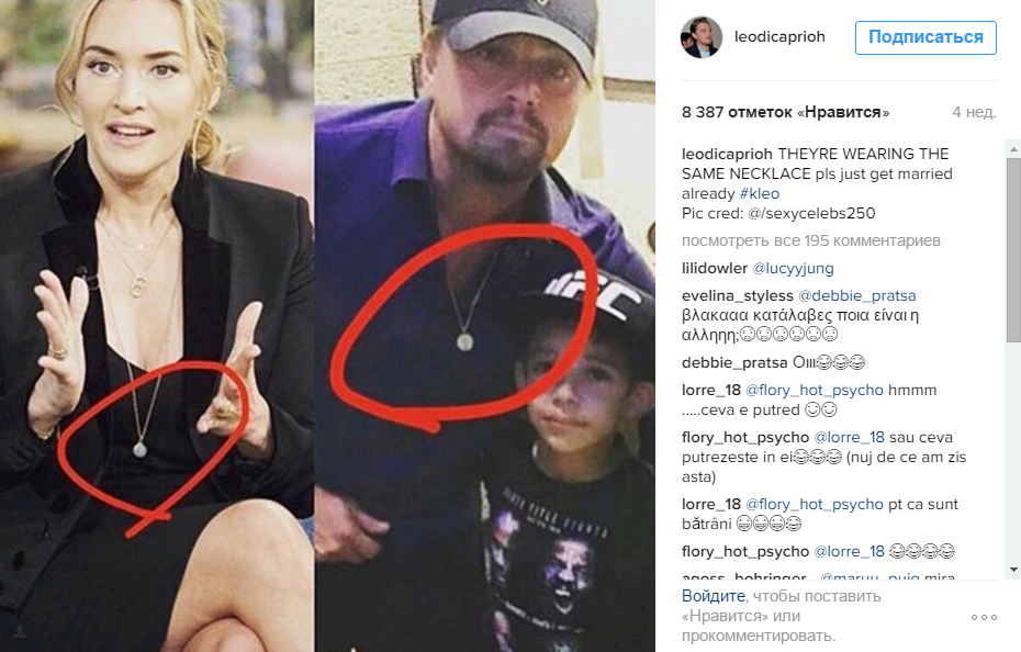 Ранее я публиковала пост с фан-страницы Лео в Инстаграме https://www.instagram.com/leodicaprioh/ про "одинаковые" кулоны Лео и Кейт".