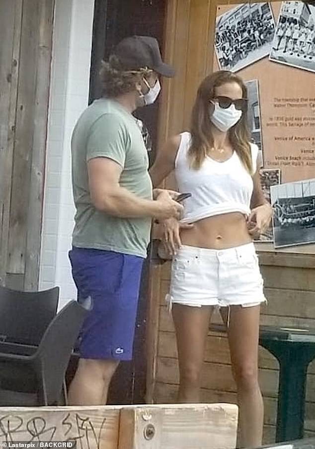 Шотландский актер, 50 лет, и его главная подружка даже сморщились для поцелуя, а губы Браун сцепились с ее кавалером через матерчатую маску для лица. В солнечный день парочка остановилась у бара с соками, чтобы перекусить. Батлер и Браун начали встречаться в 2014 году, но расстались в следующем году. Затем они воссоединились в 2016 году, когда их видели вместе наслаждающимися пляжным отдыхом в Мексике. С тех пор отношения, кажется, стали более прочными.