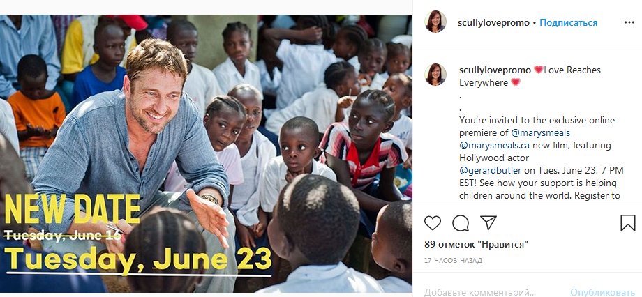 вы официально приглашены присоединиться к нам для специального и эксклюзивного просмотра нашего нового фильма "Любовь достигает всего" с голливудским актером Джерардом Батлером в главной роли! Зарегистрируйтесь на эту эксклюзивную онлайн премьеру по адресу https://www.marysmeals.ca/lovereacheseverywhere