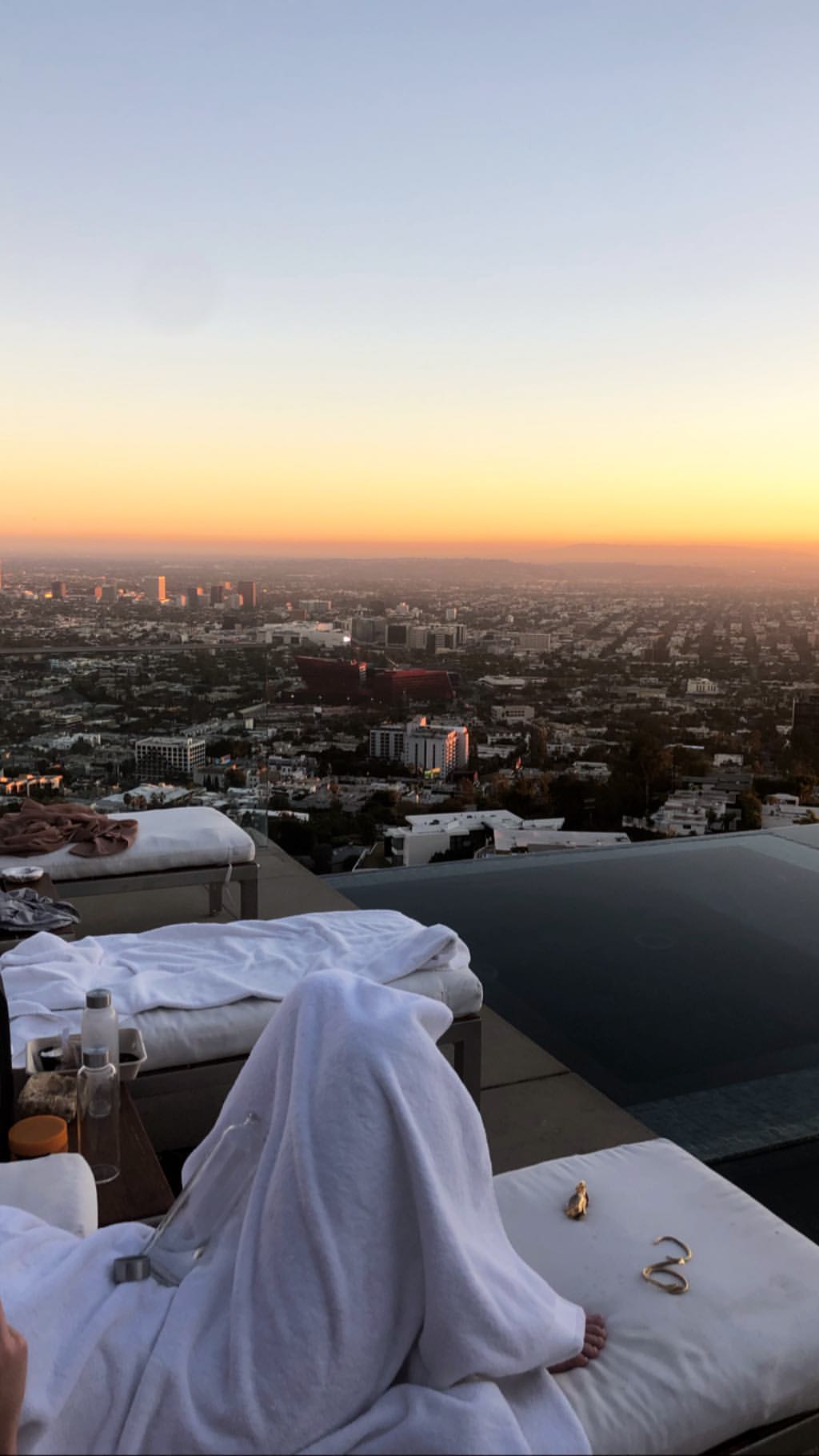 Фото Камилы (лицо не вошло в кадр) возле бассейна на террасе