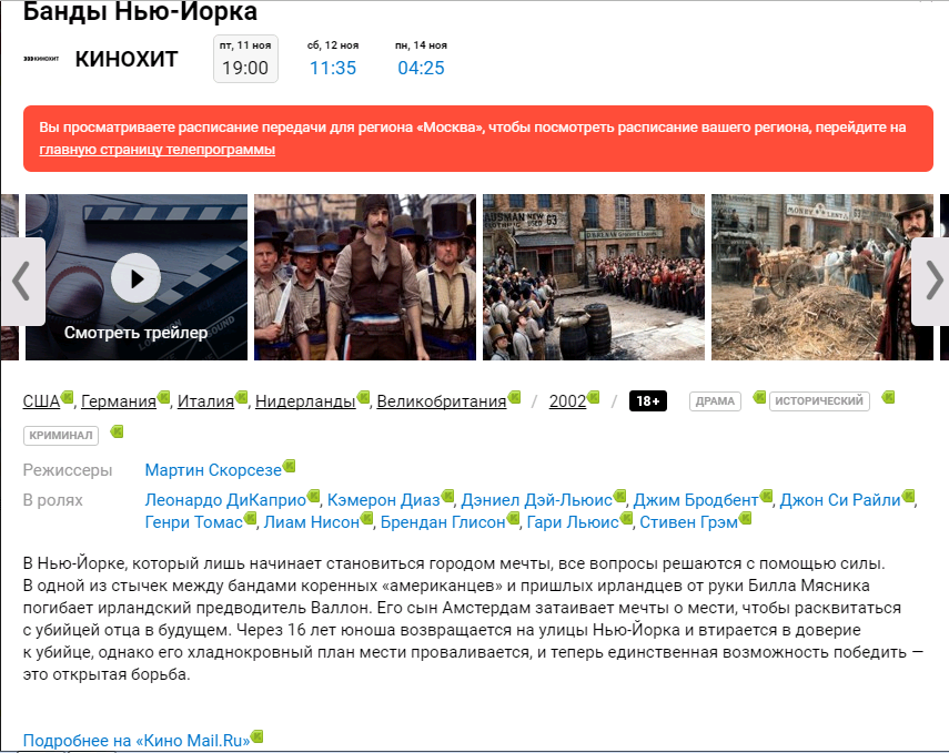 на канале Кинохит и Кино ТВ "Банды Нью-Йорка" и "Авиатор"!!!