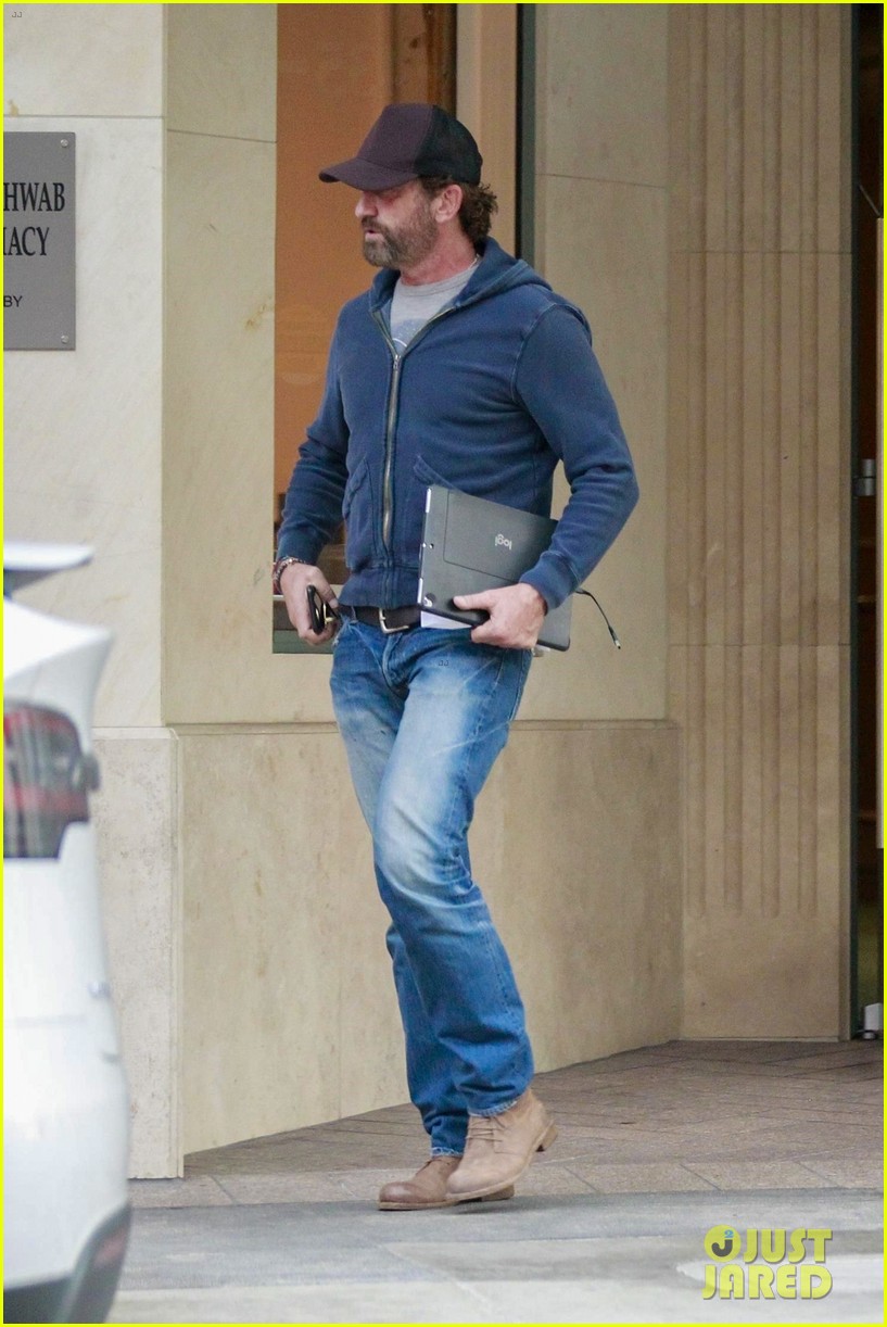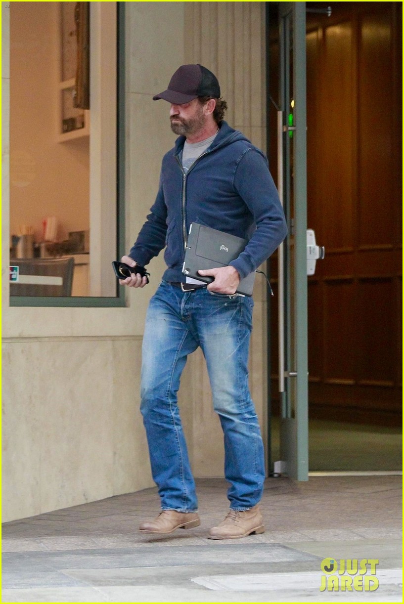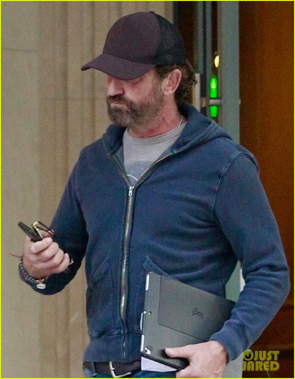 Джерард Батлер выходит из офисного здания в пятницу утром (17 января) в Беверли-Хиллз, Калифорния.